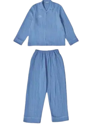 아비에무아 크링클 코튼 파자마 세트 블루