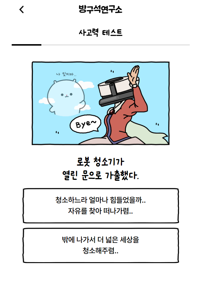 2.로봇 청소기가 열린 문으로 가출했다.