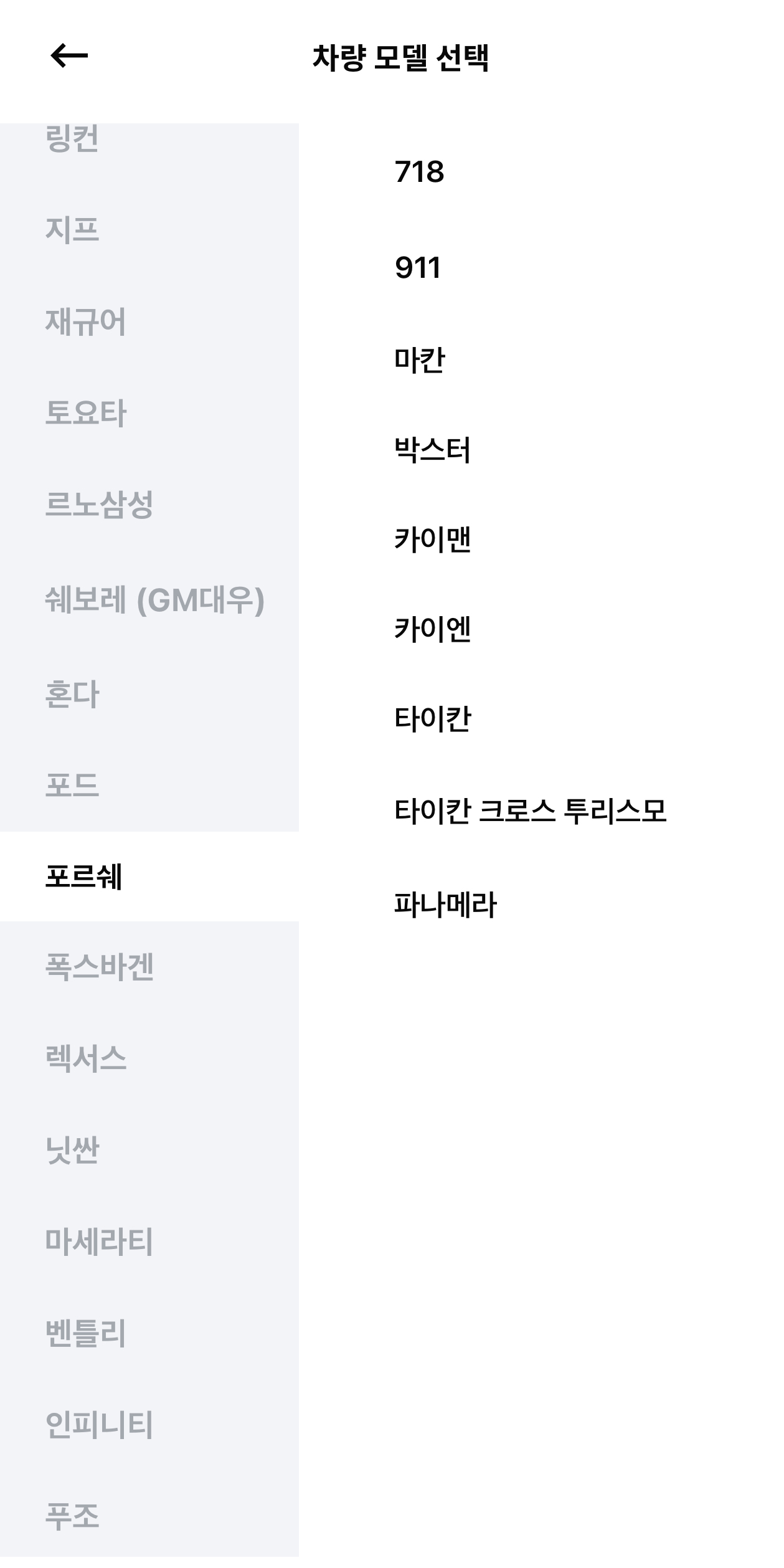 차량종류를 선택하고 나면