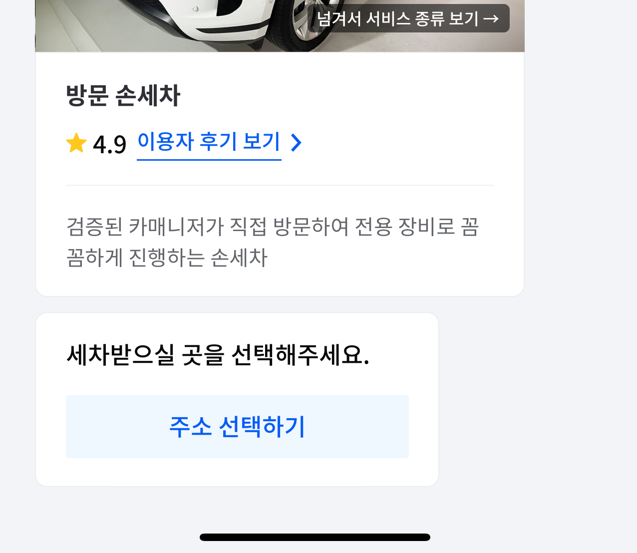 방문손세차를 선택하면 세차받으실 주소를 선택하고