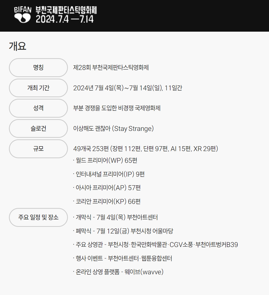 제28회 부천 판타스틱 영화제 기간 상영관 예매 및 상영 스케줄 안내
