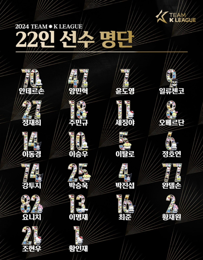 선수 구성: 팬 투표로 선발한 22세 이하 선수 쿠플영플 1명, 팬 일레븐 11명, 코칭 스태프들이 뽑은 10명으로 구성됩니다.