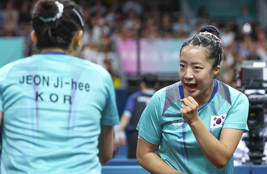 2024 파리 올림픽 탁구 여자 단체전 8강전에서 신유빈(대한항공), 이은혜(대한항공), 전지희(미래에셋증권)로 구성된 한국 팀은 스웨덴을 매치 점수 3-0으로 이겼다.
