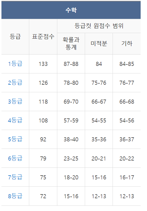 2024 6월 모의고사 수학 등급컷