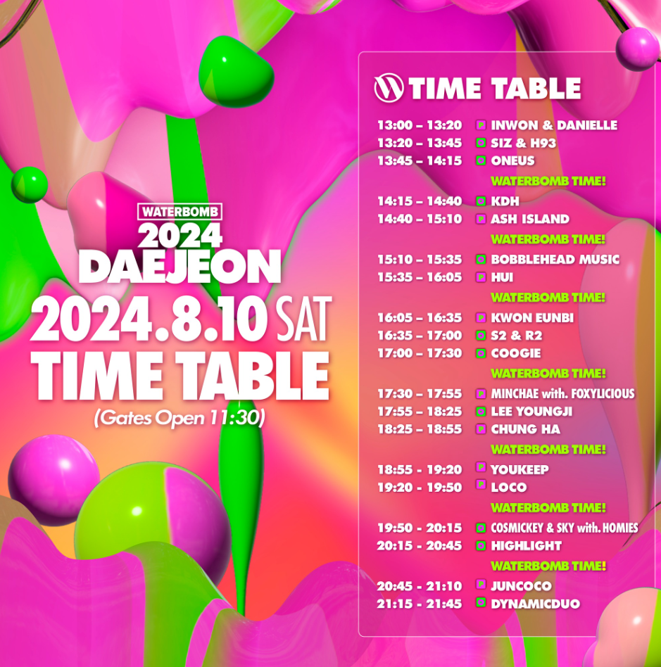 2024 대전 워터밤 타임테이블 및 라인업