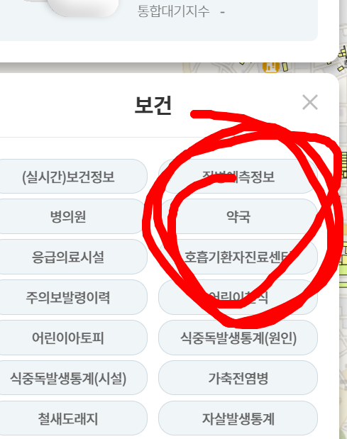 보건을 선택한다 그리고 약국을 선택하면