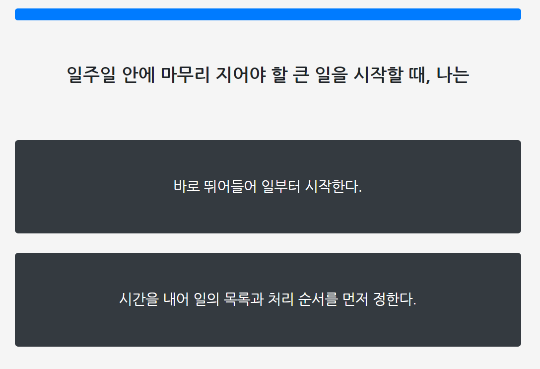 일주일 안에 마무리 지어야 할 큰 일을 시작할때 나는?