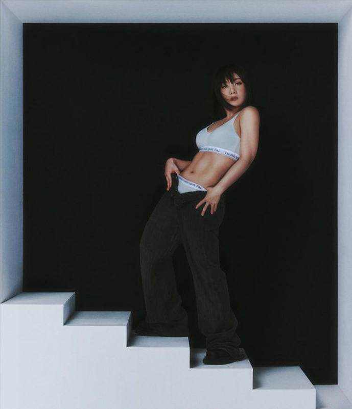 박나래는 바디프로필 촬영 시 심플하면서도 트렌디한 디자인의 그레이 컬러 스포츠 브라를 착용했습니다. 이 스포츠 브라는 몰드 부착형이며, 훅아이로 입고 벗기가 편리합니다. 에코론 원단을 사용하여 흡한속건 기능이 우수하고 통기성이 뛰어나며, 어깨끈과 날개 U 라인이 안정적으로 착용됩니다. 세리프 로고 밴드가 매치되어 스타일리시한 분위기를 연출합니다. 이 제품은 필라 언더웨어 밸로 브라탑 팬티 세트로, 다양한 색상 옵션이 있습니다.