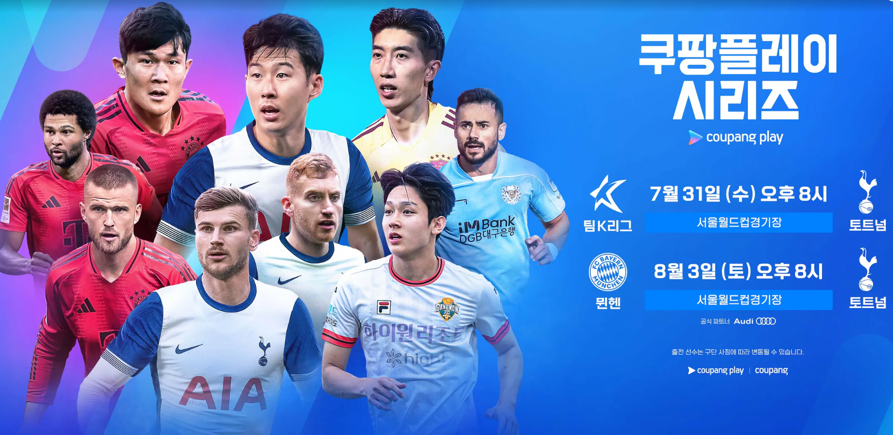 토트넘 k리그 쿠팡플레이시리즈 중계 방송 날짜 시간 선수 명단