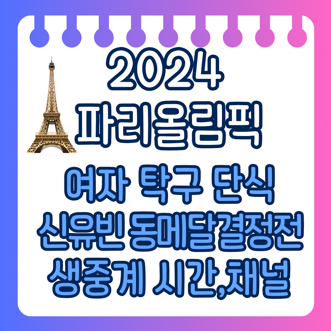 파리올림픽 여자 탁구 단식 동메달 결정전 신유빈 생중계 시간 채널 인스타