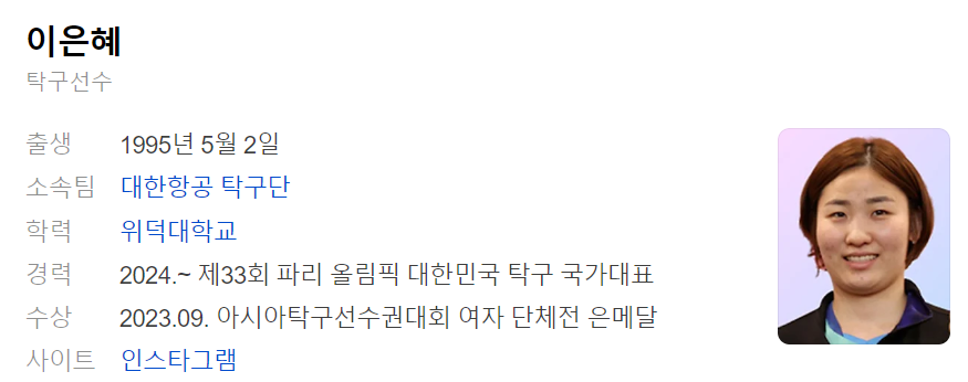 - 소속: 삼성생명 탁구단