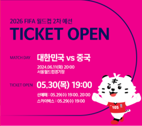 2026 북중미 월드컵 아시아 2차 예선: 대한민국 vs 중국 티켓 예매 가이드