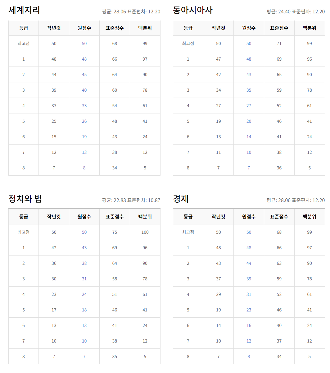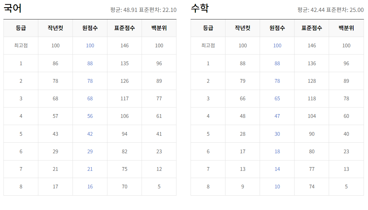 2024년 6월 고2 모의고사 국어 수학 영어 한국사 등급컷
