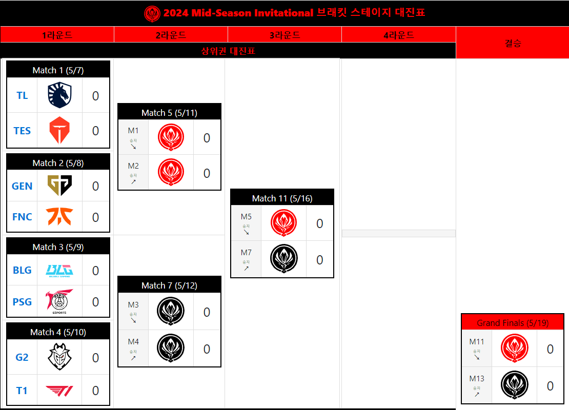 2024 롤 MSI 경기 일정 T1 중계 방송 채널 브래킷 스테이지