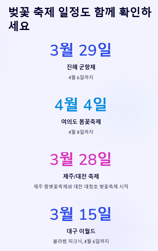2025 벚꽃 개화시기 만개 축재 주차 꿀팁